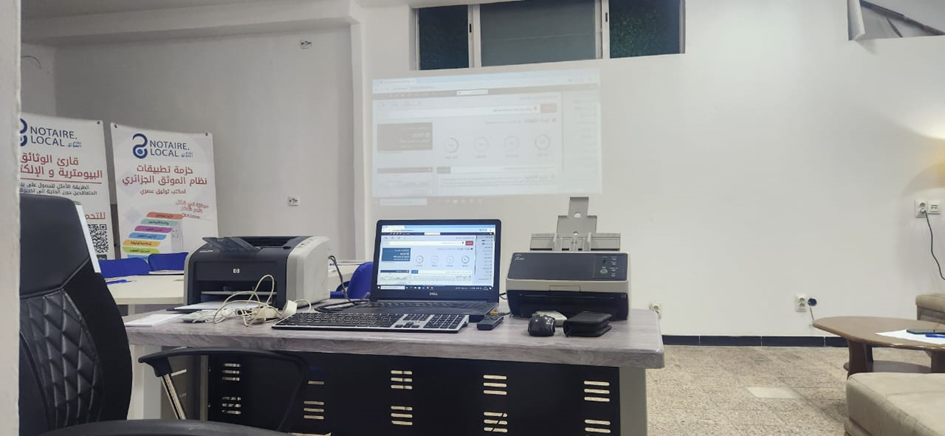 • يشارك فريق عمل متخصص في تحضير الوثائق، الأرشفة والمسح الضوئي، مع تدريبه على استخدام نظام الموثق الجزائري وتطبيق نجم الذي يربط بين النظام وبين أجهزة المسح الضوئي،
